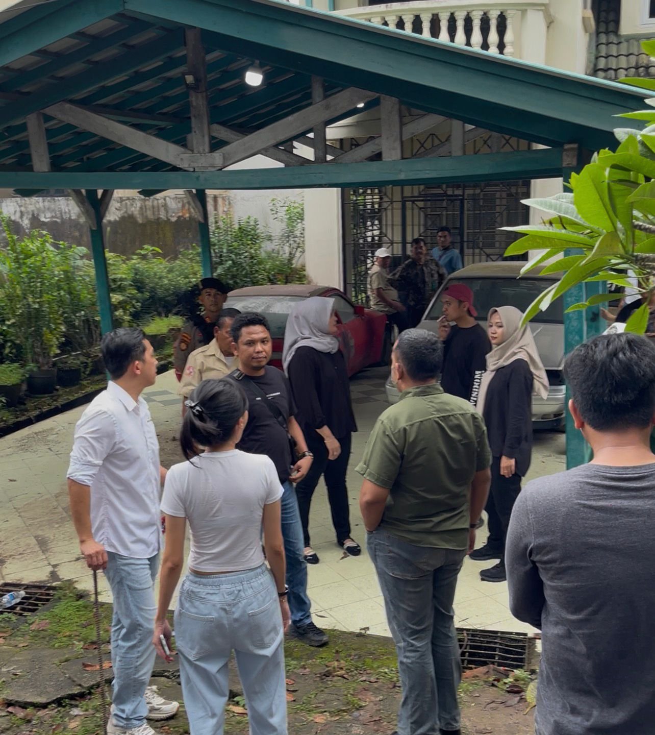 Aparat kepolisian yang berada di lokasi akhirnya melakukan penertiban dan meminta massa menjauh agar proses dapat berjalan sesuai ketentuan. Selain mobil berwarna hitam tersebut, terdapat tiga kendaraan lain yang juga terparkir di area teras rumah.