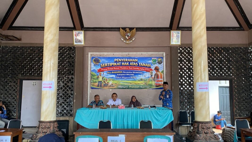 Malang, 18 Februari 2026 – Kantor Pertanahan Kabupaten Malang melaksanakan kegiatan penyerahan sertipikat Program Pendaftaran Tanah Sistematis Lengkap (PTSL) Tahun Anggaran 2025 kepada masyarakat Desa Banjarejo, Kecamatan Ngantang, pada Rabu (18/2/2026).