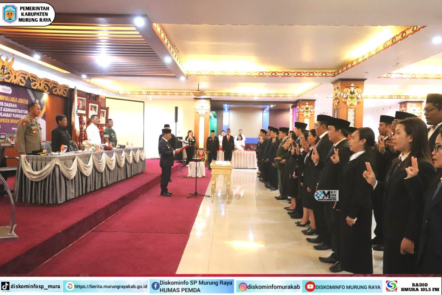Murung Raya,fokustkp.com – Bupati Murung Raya, Heriyus memimpin Pelantikan dan Pengambilan Sumpah/Janji Jabatan Penjabat (Pj) Sekretaris Daerah, Pengukuhan Pejabat Administrator, Pengawas, serta Pelantikan Pejabat Fungsional di lingkungan Pemerintah Kabupaten Murung Raya.