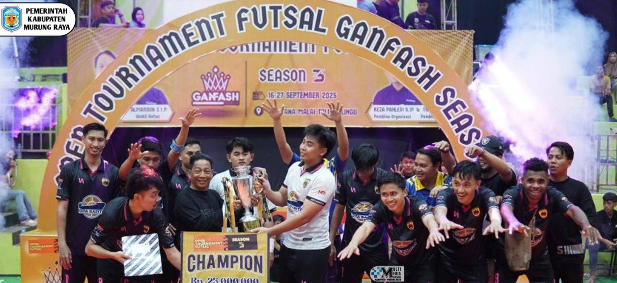 Murung Raya,fokustkp.com – Bupati Murung Raya, Heriyus, menghadiri sekaligus menutup secara resmi Open Tournament Futsal Ganfash Season III yang digelar di GOR Tana Malai Tolung Lingu, Sabtu (27/9/2025).