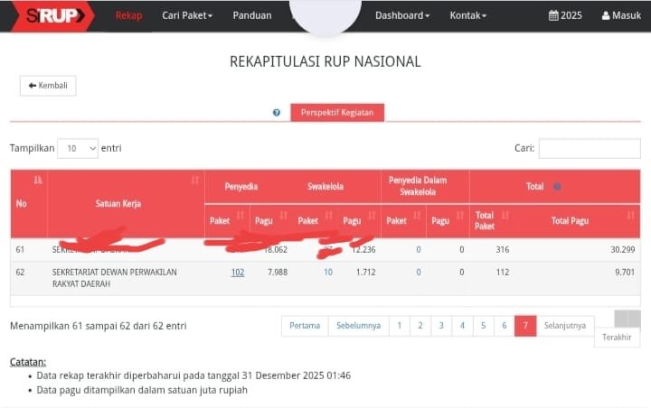 Namun, Berdasarkan penelusuran pada laman.https://sirup.inaproc.id/sirup/home/penyediaSatker?idSatker=101786 dari jumlah 102 paket pengadaan sekretariat DPRD Tubaba tahun 2025 melalui Penyedia tidak di temukan jenis kegiatan Rehabilitasi Plafon maupun Renovasi. Sehingga Kuat Dugaan Proyek Rehabilitasi Plafon di sekretariat DPRD Tubaba Terindikasi kuat syarat Adanya Permainan.