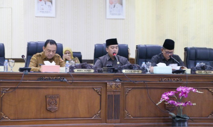 Rapat tersebut dipimpin langsung oleh Ketua DPRD Kabupaten Agam, H. Ilham, Lc., M.A., didampingi Wakil Ketua DPRD, Muhammad Risman dan Aderia, S.P., M.M.