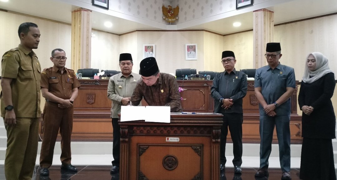 Penandatanganan dilakukan langsung oleh Ketua DPRD H. Ilham, Lc, MA, dan Bupati Agam H. Ir. Benni Warlis, dalam Rapat Paripurna yang berlangsung di Ruang Sidang Paripurna DPRD Agam, Senin (15/9).