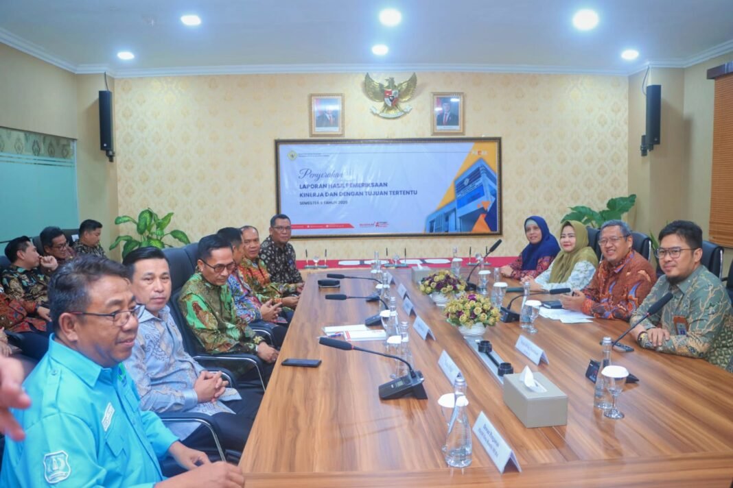 Palembang- Wakil Bupati Musi Banyuasin (Muba) Kiai Abdur Rohman Husen menghadiri penyerahan Laporan Hasil Pemeriksaan (LHP) Kinerja atas Efektivitas Pengelolaan Operasional Perusahaan Umum Daerah Air Minum (Perumda) Tirta Randik Tahun Buku 2024 sampai dengan Semester I Tahun 2025, Jumat (13/02/2026) di Kantor Badan Pemeriksa Keuangan Perwakilan Provinsi Sumatera Selatan.