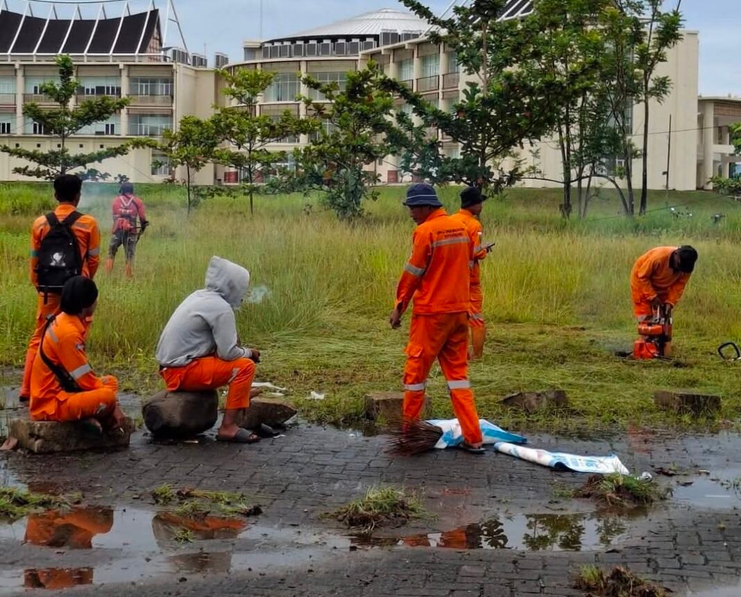 Padang– Dinas Lingkungan Hidup (DLH) Kota Padang terus berkomitmen menjaga kebersihan dan keasrian lingkungan pusat pemerintahan. Pada Rabu (15/4/2026), sejumlah petugas dikerahkan untuk melakukan pembersihan dan pemotongan rumput di kawasan Balai Kota Padang, tepatnya di sekitar gedung kantor Badan Kepegawaian Daerah (BKD) sampai gedung BPBD.